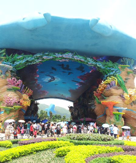 我們先來且不說國內類似于香港迪士尼、方特這樣的大IP制作,就拿廣東珠海的一個長隆海洋王國來作為示例。長隆海洋王國主題樂園首先確定了游樂場設計以海洋為題,那么在他們的游樂場設計中門頭挑選出一個可愛又據代表性的大型鰩魚作為入口建筑,入口又是一條長長的絢爛海底通道,這樣的一種代表性造型建筑容易讓人不自覺地產生內容衍生感,這種濃厚的海洋氣勢使得游客在還未拿到票時就能夠被深深吸引。游樂場設計中標識的作用就是緊密與導向系統做到布局合理性,當然除了向導作用也可以綜合整個游樂設計的設計風格來講進行道路標識。美國瓜達盧佩河岸大道游樂場的游樂場設計標識與游樂場設計導向系統設計就非常成功。游樂場設計師借用地面標志來引導游客的行動路線,用帶有箭頭的鑄銅導向“大獎章”和鑲嵌到大理石路面用由馬賽克和鑄銅文字組成的指南針來幫助游客找尋方向。